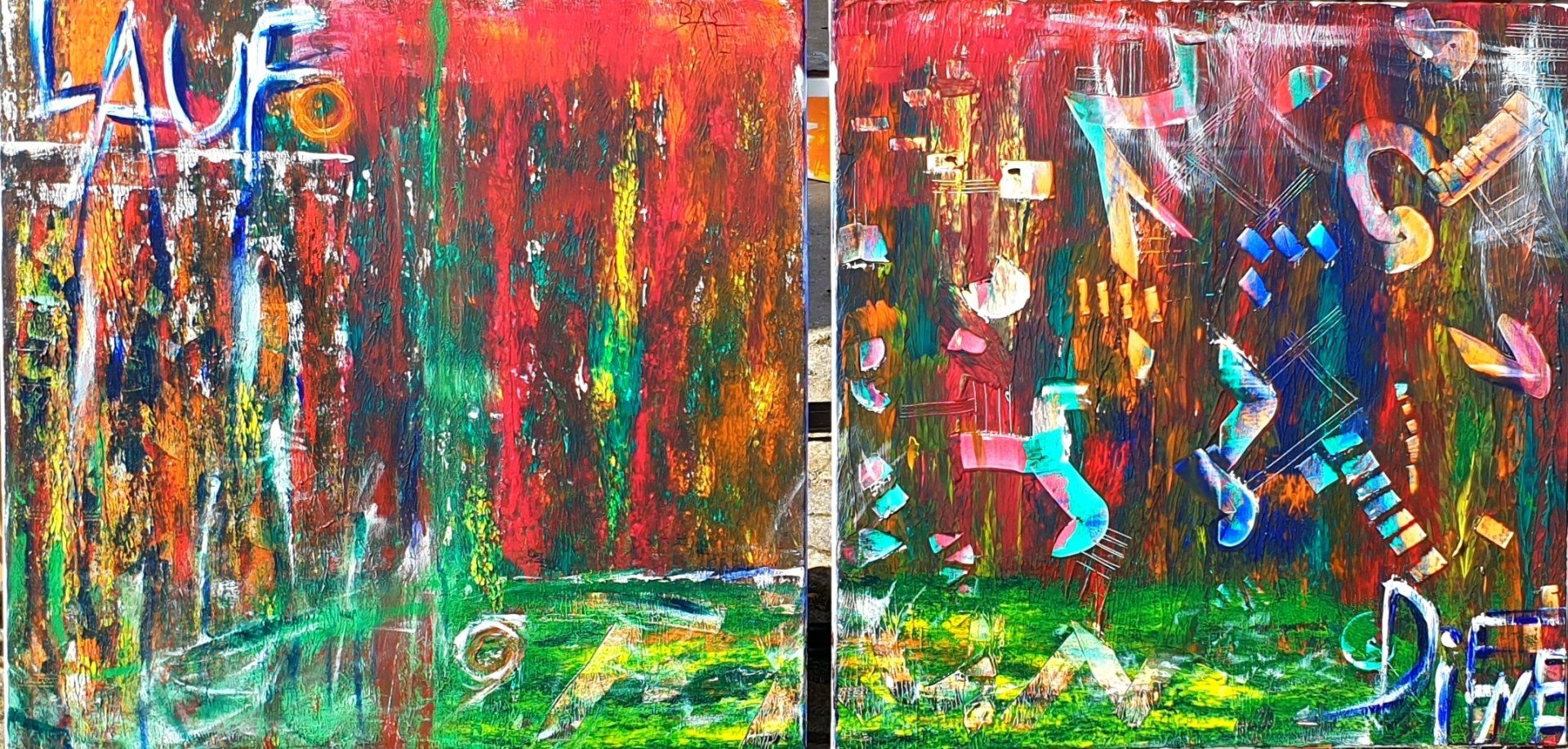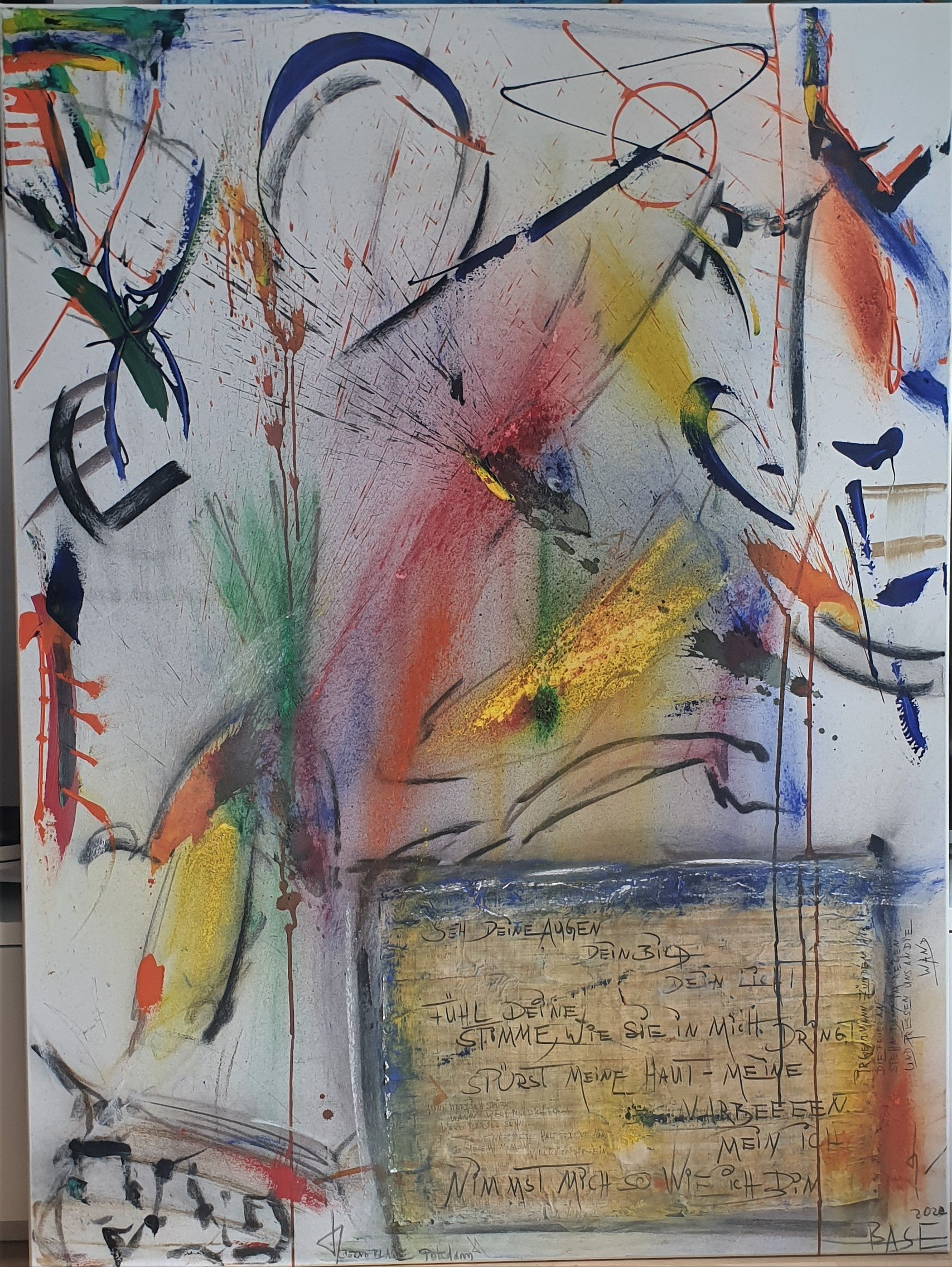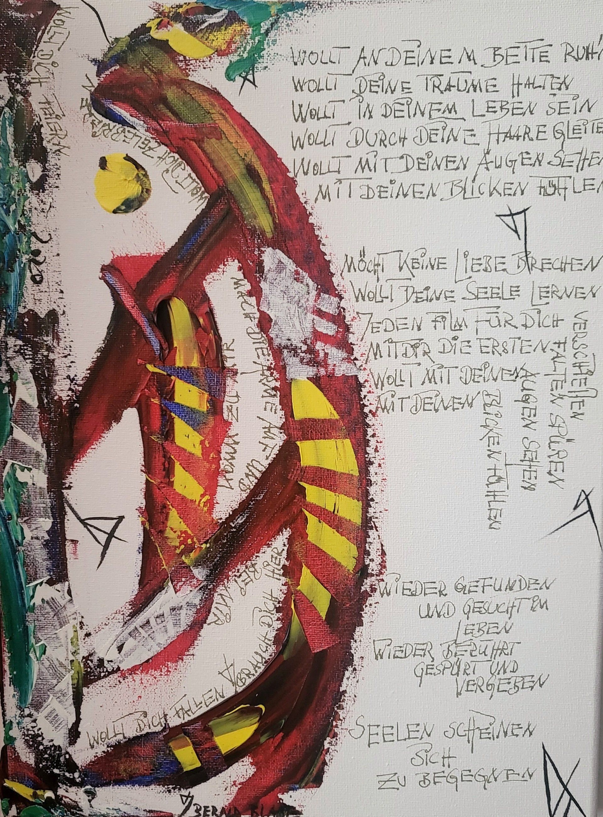 Jedes Bild hat zusätzlich auf der Rückseite ein Gedicht, Gedanken, die den Traum und meine Gedanken beschreiben und ist von mir signiert. Ich versuche das Malen mit der Lyrik zu verbinden.